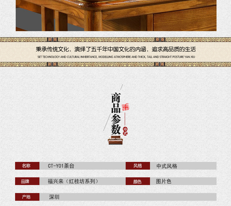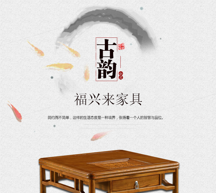 福兴来中式简约风格实木方形茶台大小户型实用茶台CT-Y01