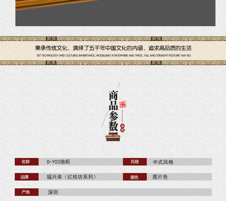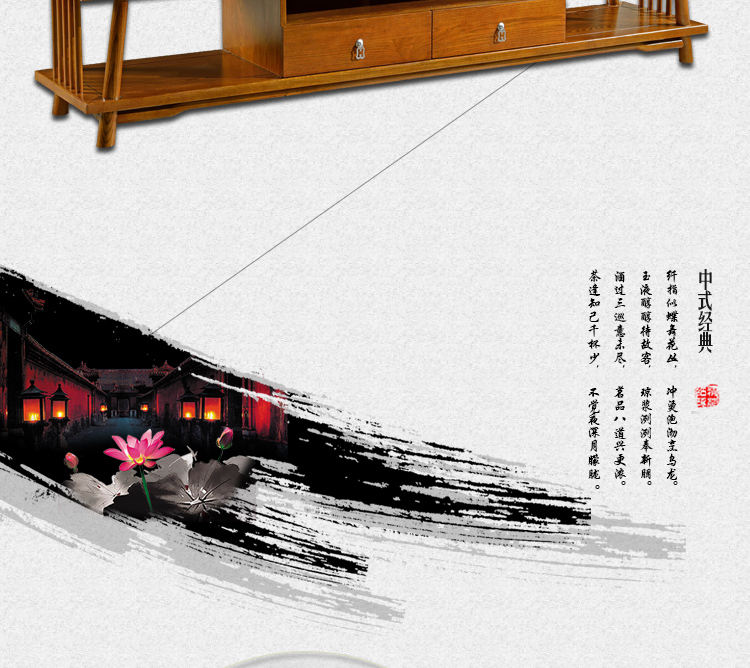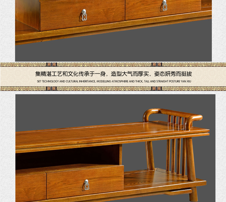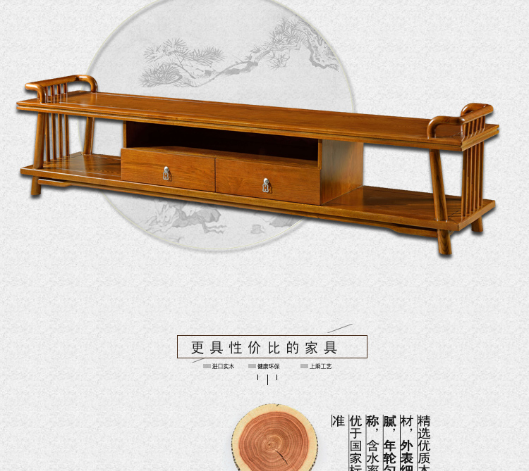 福兴来中式风格客厅简约创意带抽储物电视柜大小户型实用地柜D-Y03