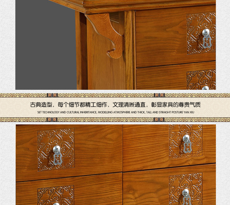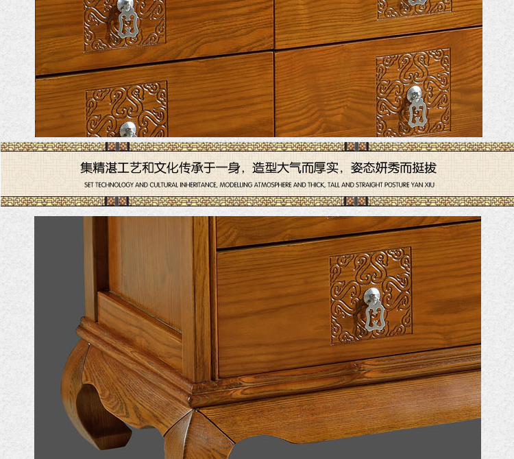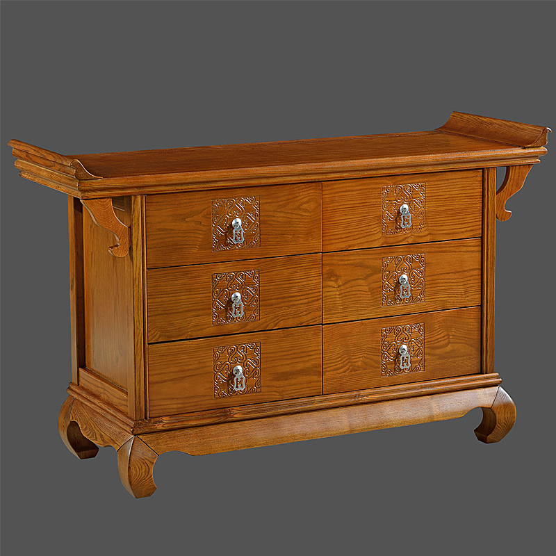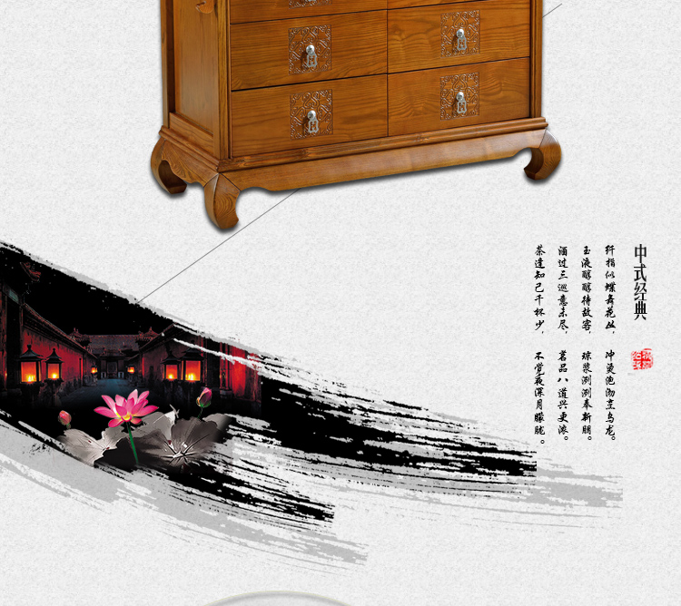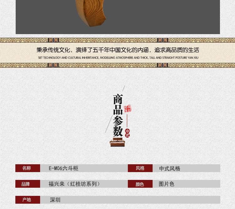 福兴来卧室中式风格简约创意雕刻斗柜实用大容量储物六斗柜E-M06