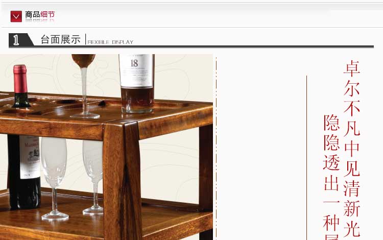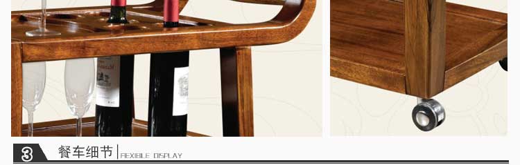 福兴来华派实木移动餐车推车置物架收餐车小吃车厨房收纳推车O801