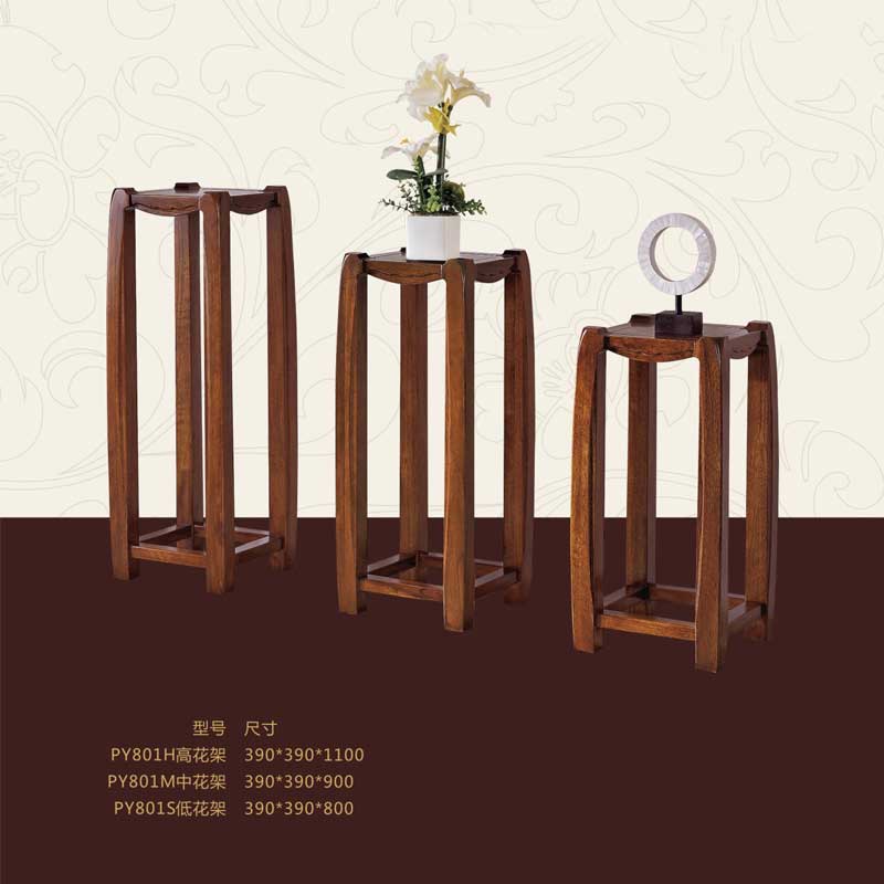 福兴来华派系列全实木花架乌金木 现代中式简约花几中式实木室内客厅家具PY801M