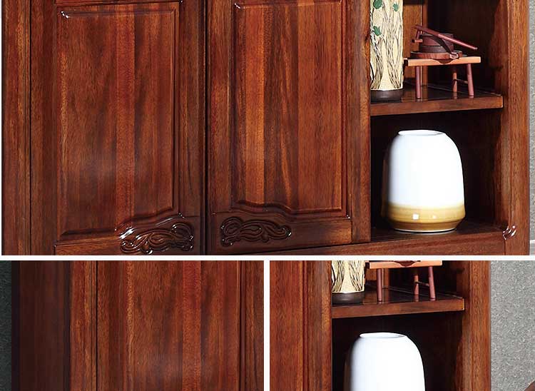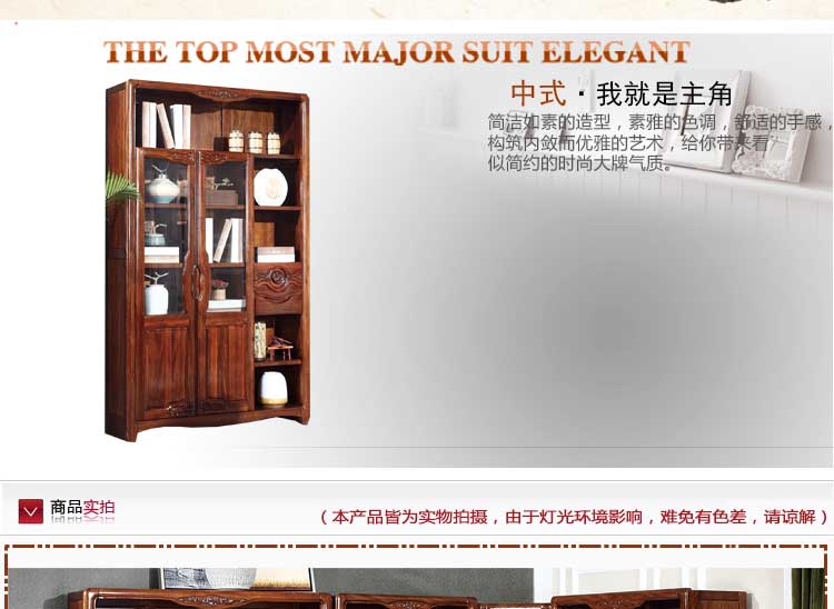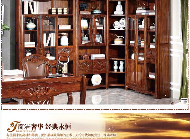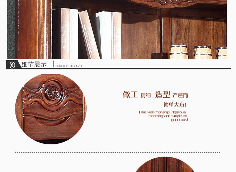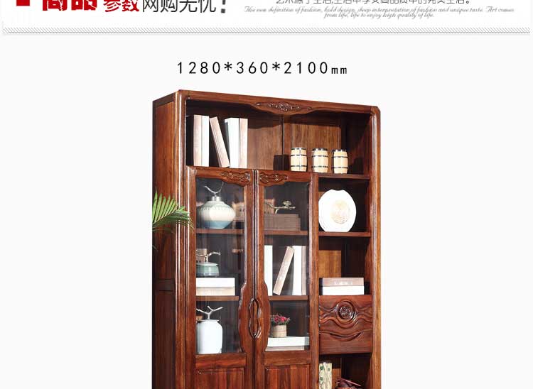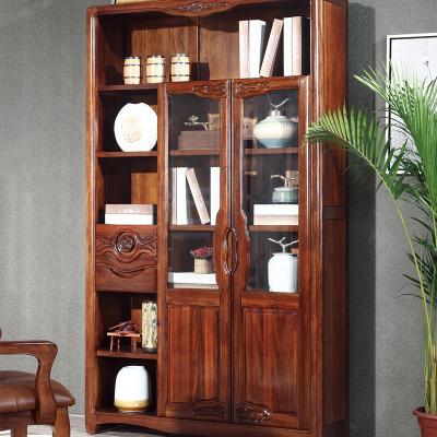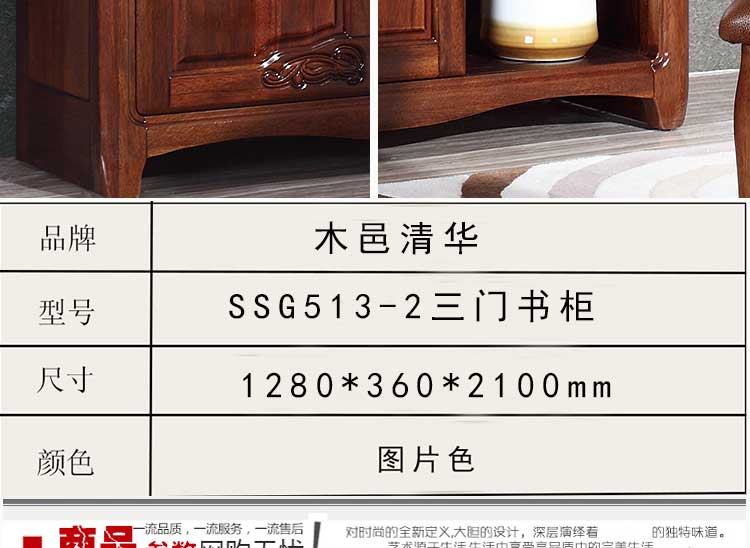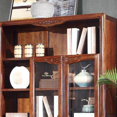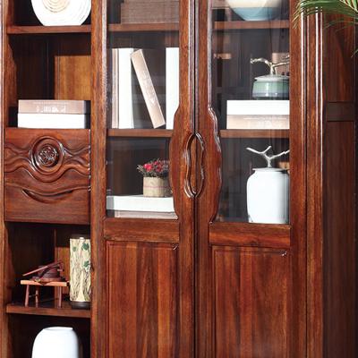 木邑清华 全实木书柜三门简约中式书柜带玻璃书橱SSG513-2三门书柜