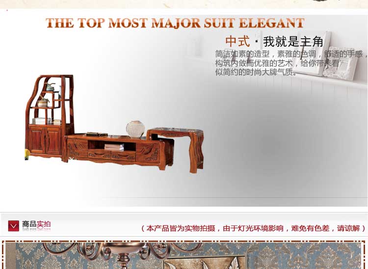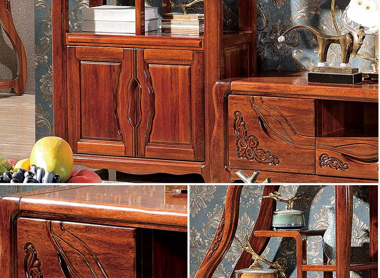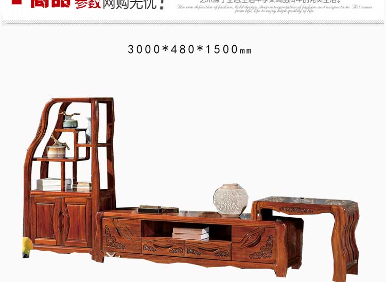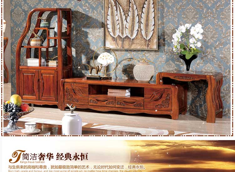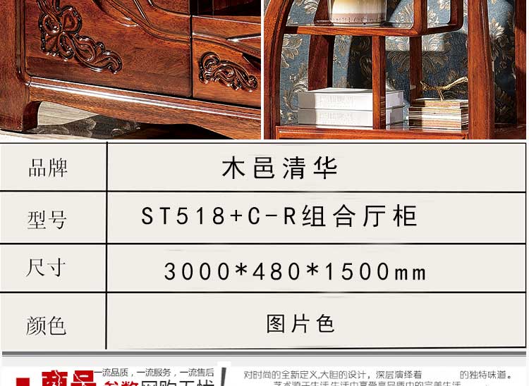 木邑清华 实木电视柜组合背景墙厅柜 现代简约中式客厅柜地柜ST518+C-R组合厅柜