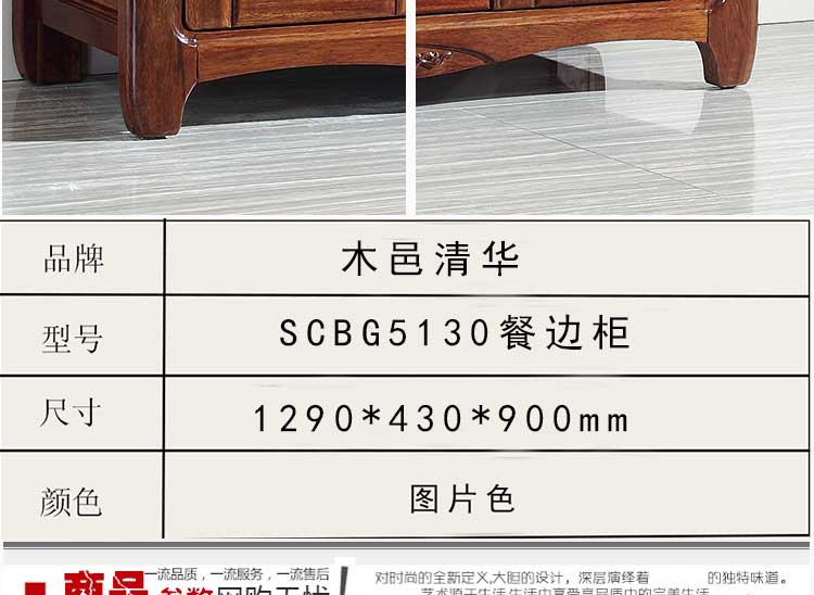 木邑清华 餐边柜实木 橱柜现代简约中式大容量储物柜 SCBG5130餐边柜