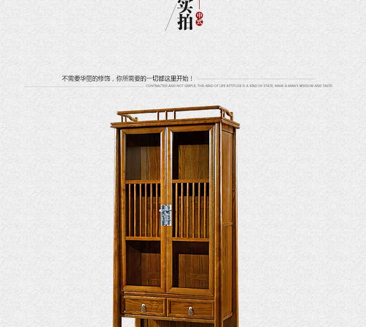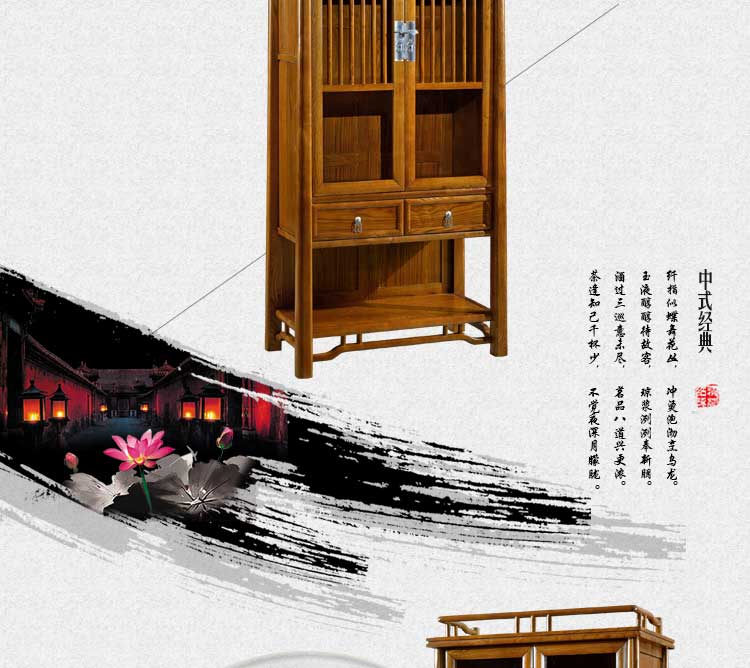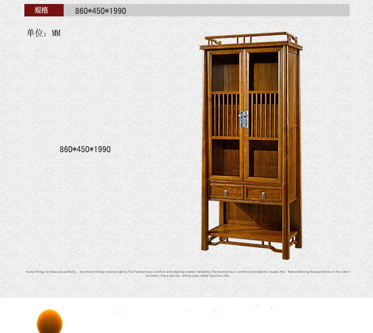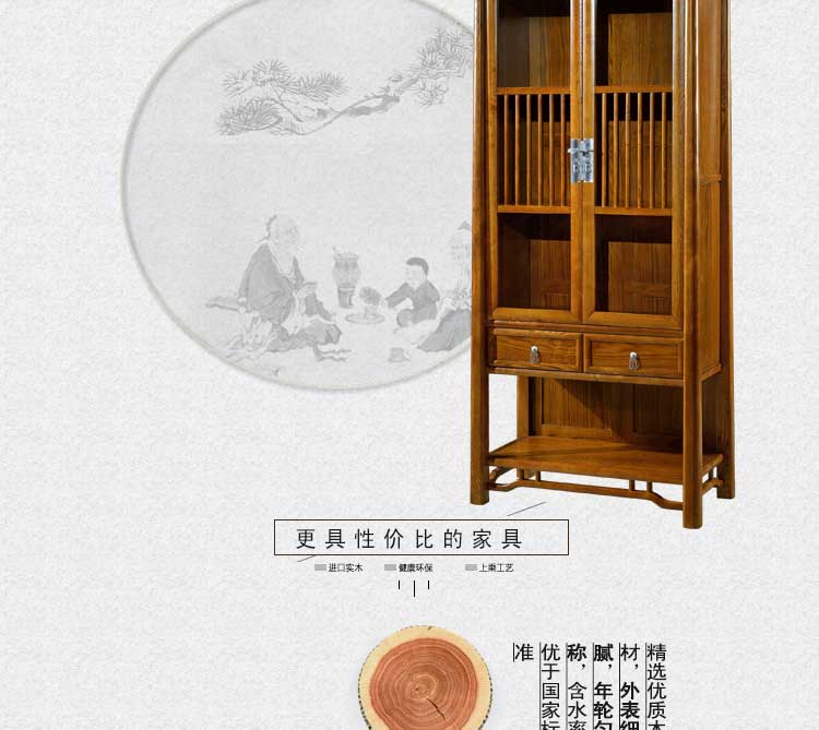 福兴来 实木酒柜中式储物柜收纳展示柜中式展柜双门H-Y01A高饰柜