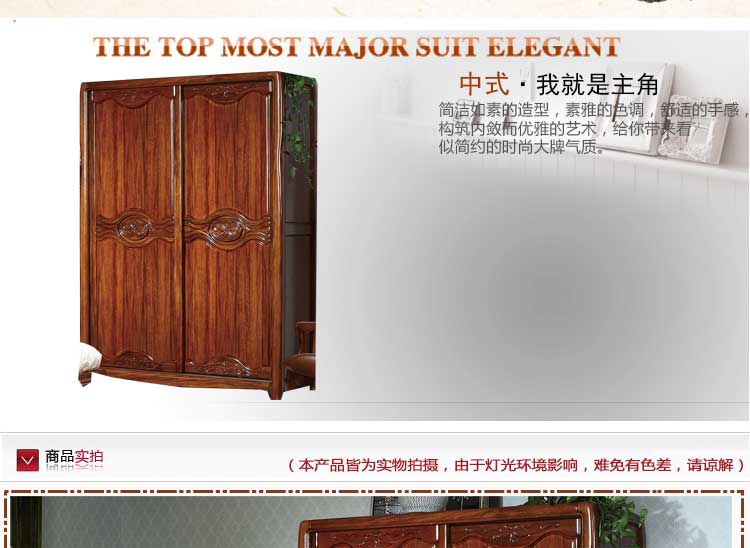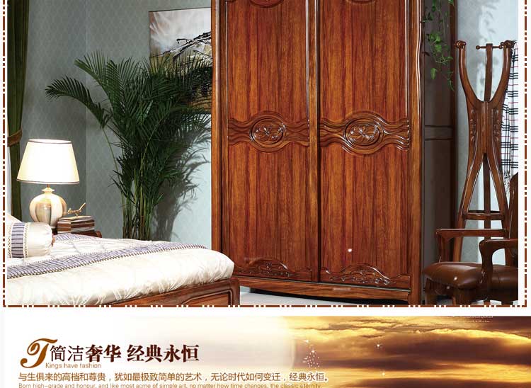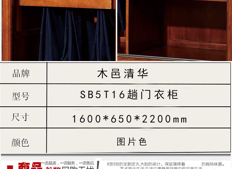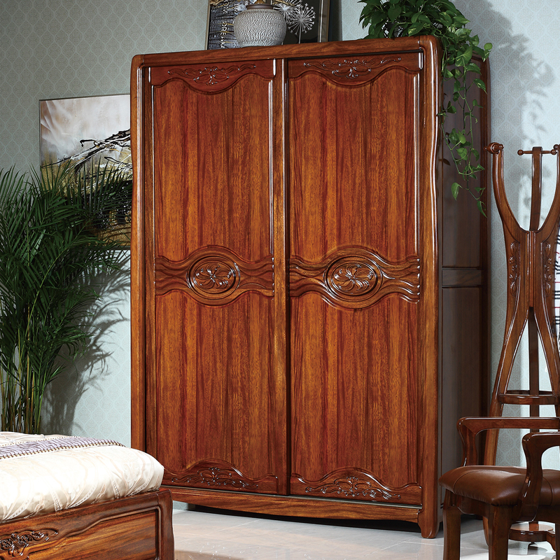 木邑清华 全实木推拉门衣柜趟门衣橱柜现代中式卧室家具SB5T16趟门衣柜