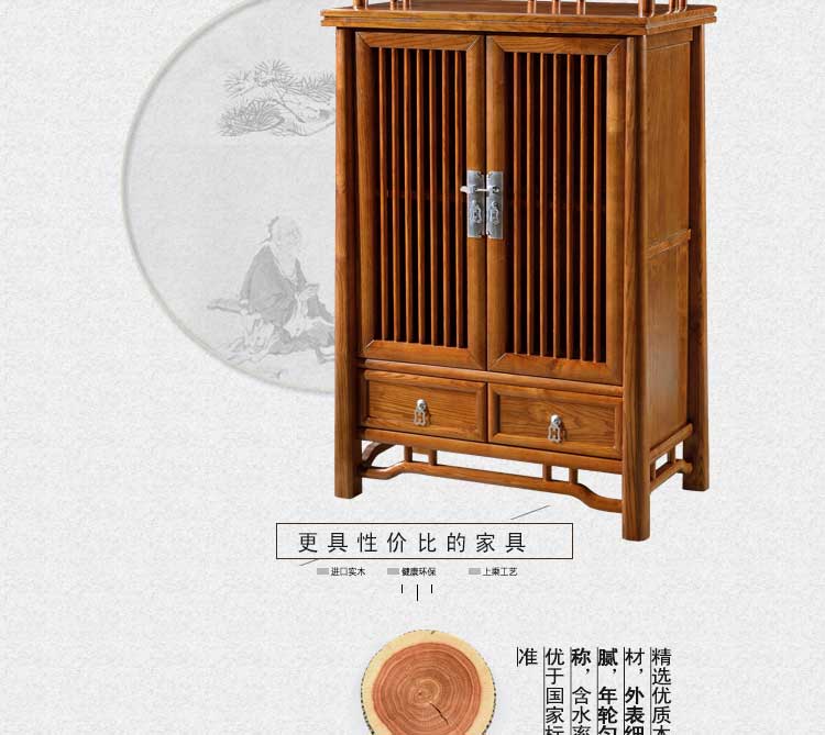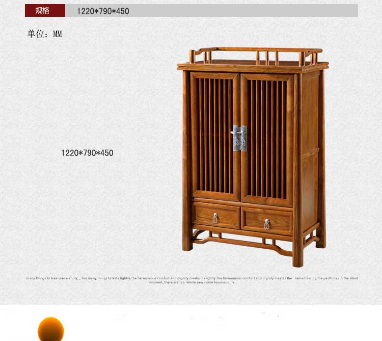 柜子外观漂亮,放在客厅做隔断柜用,尺寸正好,做工挺精致的,跟我家风格很搭,实木的很大气!