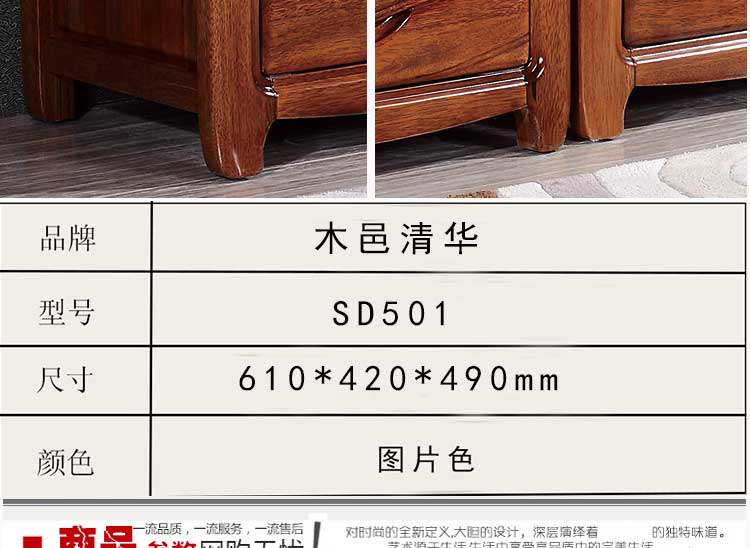 木邑清华 纯实木床头柜住宅家具 现代简约中式床头柜 SD501
