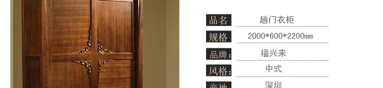 福兴来华派系列中式衣柜实木推拉门衣柜移门衣橱趟门大衣柜D804