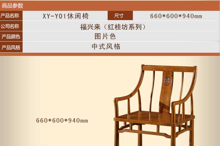 福兴来新款中式休闲椅实木书椅大小户型家具XY-Y01 休闲椅