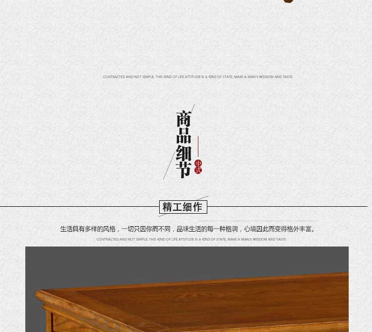 秉承灵感无限的美学创意思想,将艺术和传统文化融入家具设计,每一个细节都表现出家具的品味和自我的风格,折射出家具的文化和强烈个性。朴实简洁不华丽,没有繁多琐碎的花式设计,打造一个时尚完美的家。