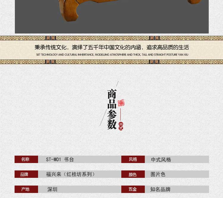 福兴来新款实木书桌中式简约办公桌书台电脑桌ST-M01 书台