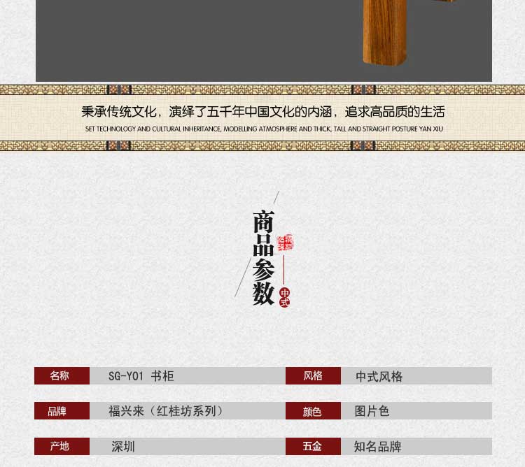 福兴来中式实木书柜带门仿古书架书橱储物柜置物柜SG-Y01 书柜
