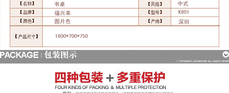 福兴来华派系列电脑桌台式家用办公桌写字桌书桌 简约中式台式电脑桌K801