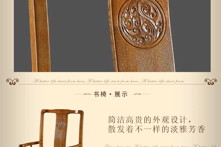 福兴来新款中式餐椅实木书椅餐椅电脑椅子书椅SY-M01 书椅