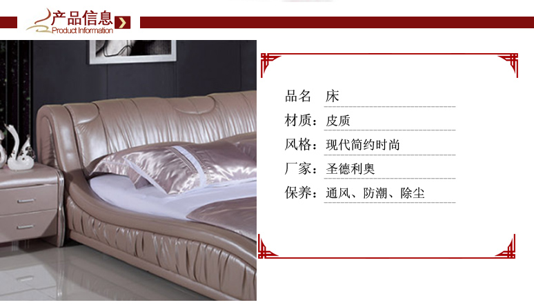 圣德利奥现代简约 软包皮艺 舒适大床婚床软体床1.8米双人大床823#