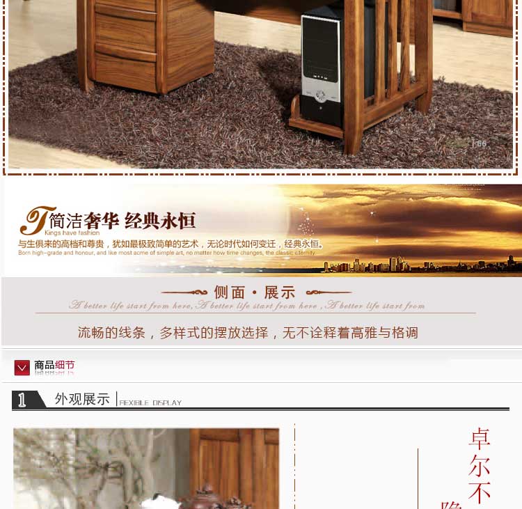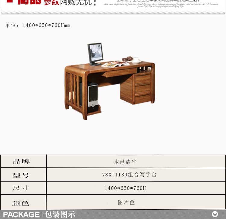 木邑清华 中式写字台 书桌 写字桌 实木桌子新款写字台 VSXT1139
