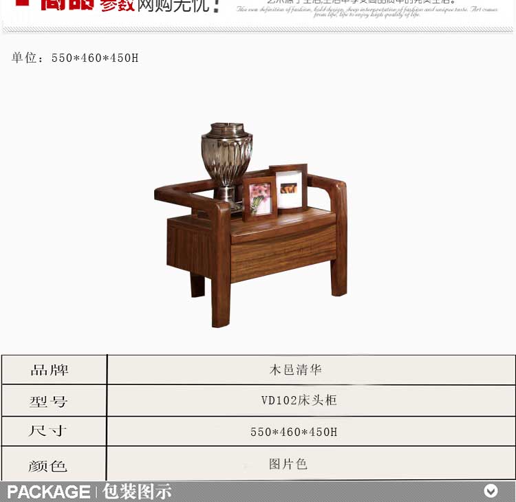 木邑清华 中式新款床头柜 实木床头柜 卧室宜家简约床头柜 VD102