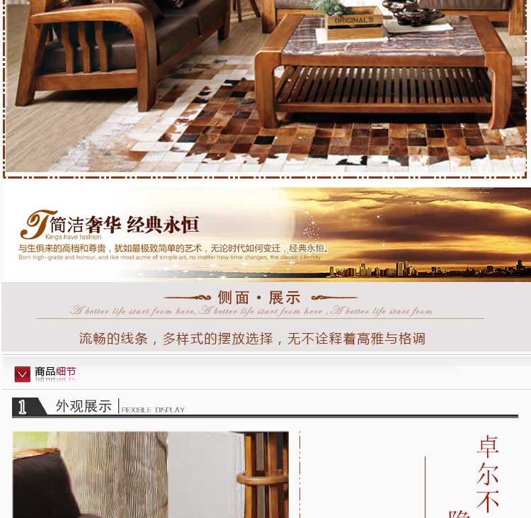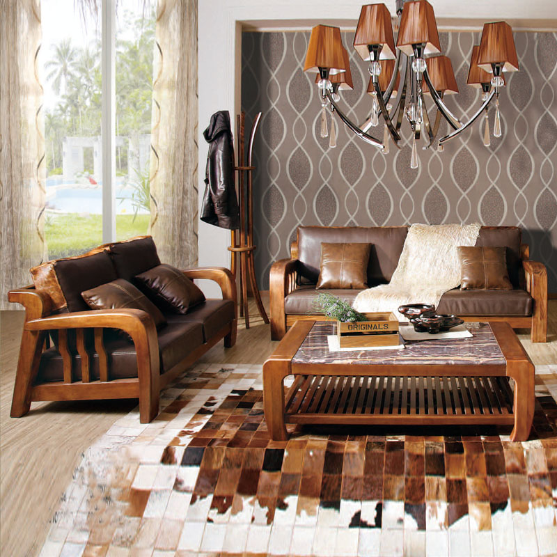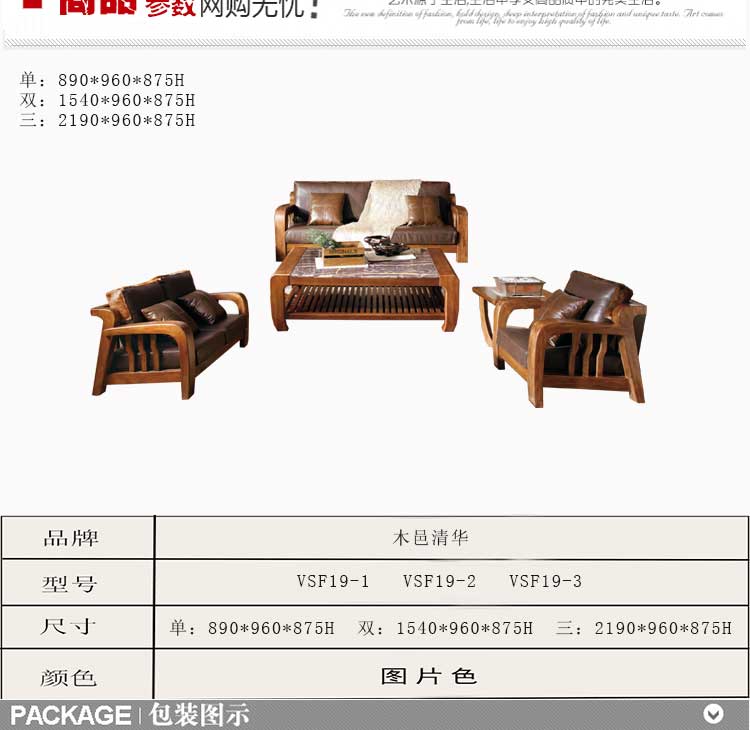 木邑清华 高档客厅沙发 真皮沙发组合 中式新款沙发 VSF19-1-2-3