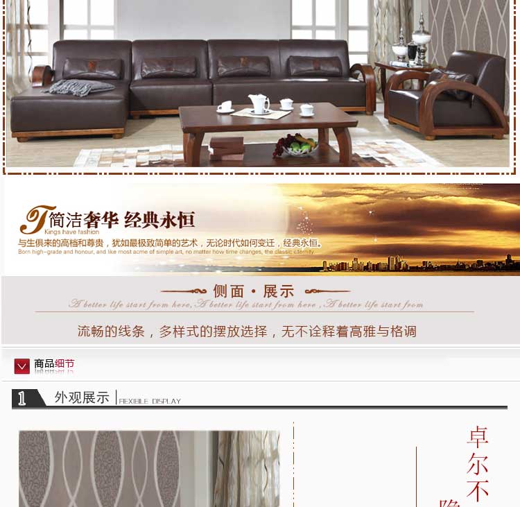 木邑清华 厂家直销新款转角沙发 中式客厅高档沙发 VSF1121-R