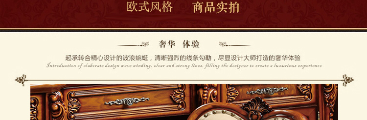 柔和的色调,大气典雅的外形,精巧的装饰点缀着每一个细节,隐隐浮现含蓄与稳重,撩拔着一种新的生活姿态,追求一种繁复夸饰,富丽堂皇,气势宏大,富于动感的艺术境界。高贵的生活品质,雍容华贵的内在气息,张扬的造型征服心灵,延续欧式的浪漫与精致!