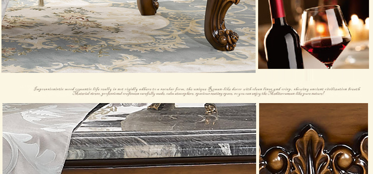 柔和的色调,大气典雅的外形,精巧的装饰点缀着每一个细节,隐隐浮现含蓄与稳重,撩拔着一种新的生活姿态,追求一种繁复夸饰,富丽堂皇,气势宏大,富于动感的艺术境界。高贵的生活品质,雍容华贵的内在气息,张扬的造型征服心灵,延续欧式的浪漫与精致!