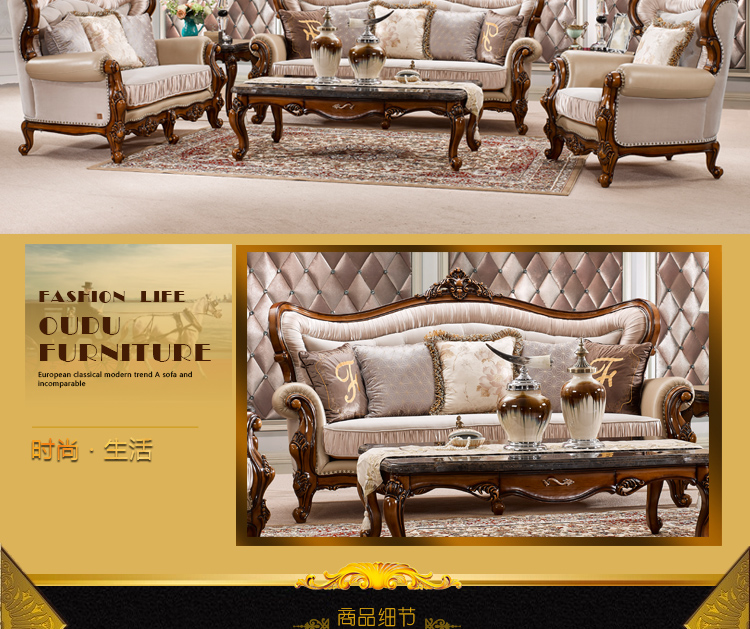 法尔丹欧式风格仿古典雅品质奢华沙发U型沙发组合舒适布艺951沙发