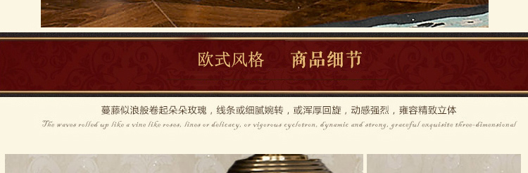 柔和的色调,大气典雅的外形,精巧的装饰点缀着每一个细节,隐隐浮现含蓄与稳重,撩拔着一种新的生活姿态,追求一种繁复夸饰,富丽堂皇,气势宏大,富于动感的艺术境界。高贵的生活品质,雍容华贵的内在气息,张扬的造型征服心灵,延续欧式的浪漫与精致!