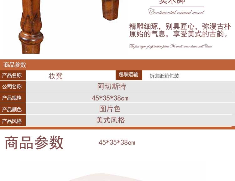 阿切斯特 全实木美式梳妆凳 古筝凳子 美式布艺软包妆凳子 A68-F07