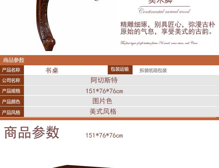 阿切斯特 家具美式乡村书桌 美式书房简约办公电脑桌实木写字台A68-S01