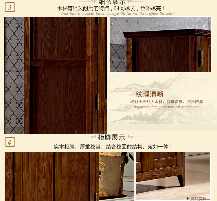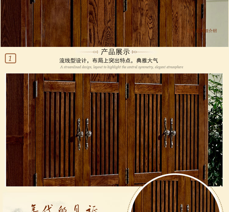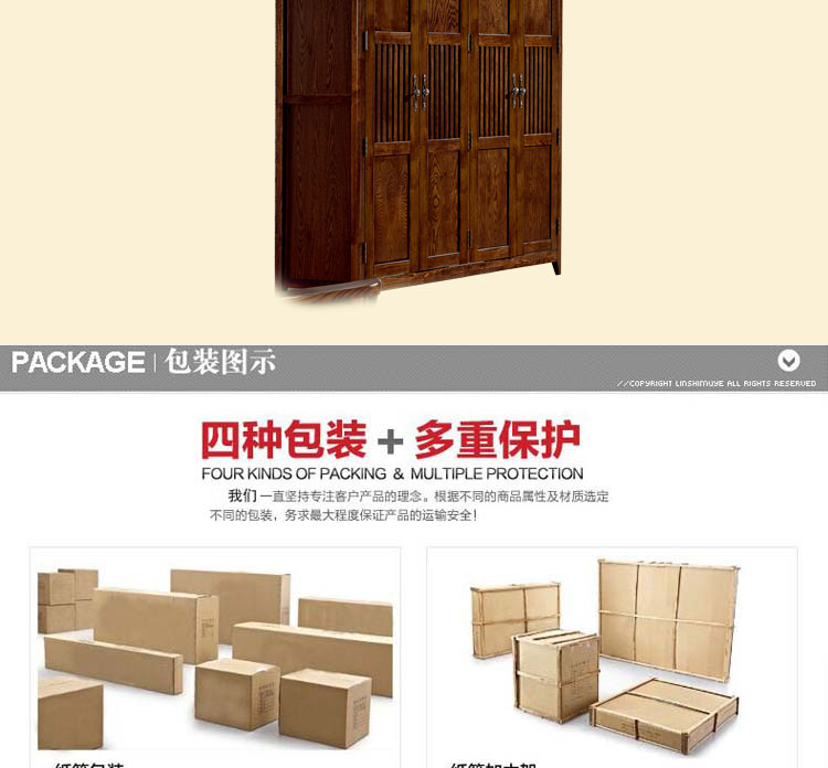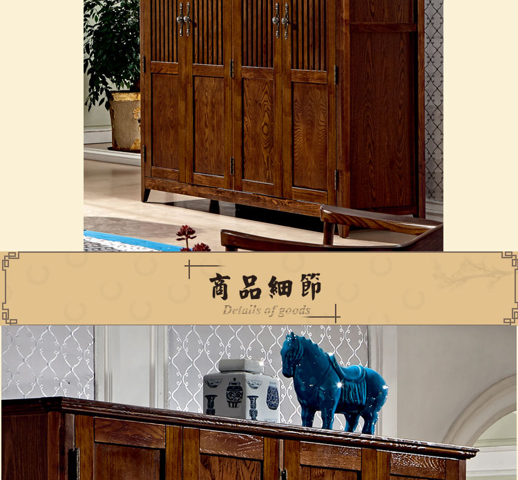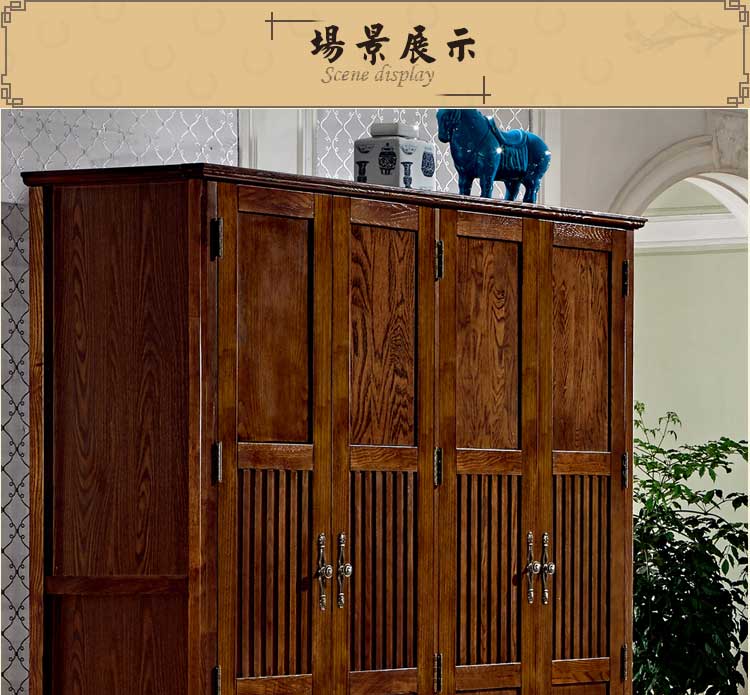 达人居 中式衣柜卧室四门衣柜白腊木大衣柜平开门衣柜 8D02#