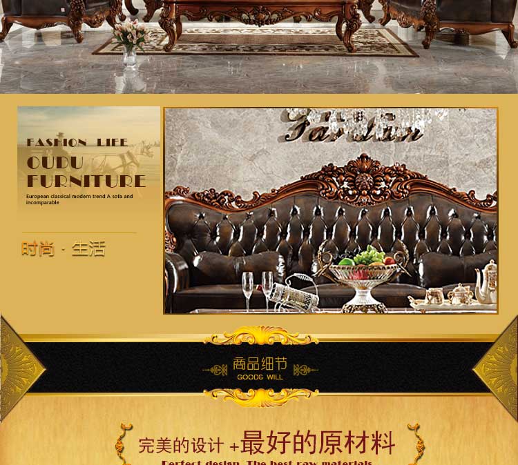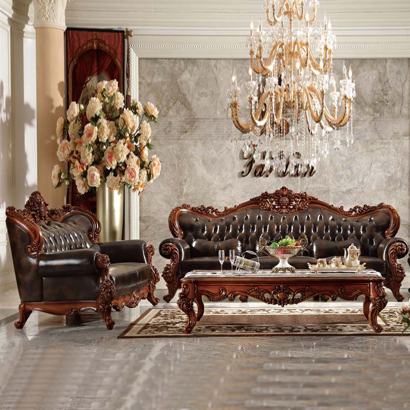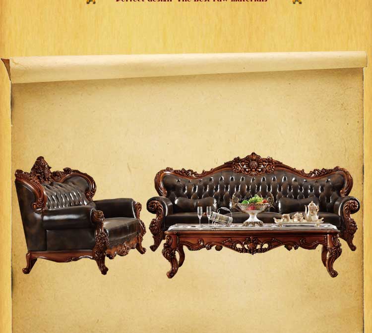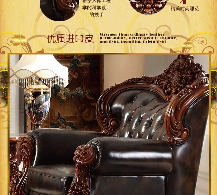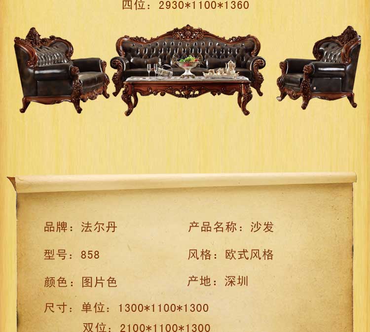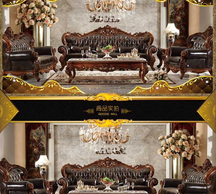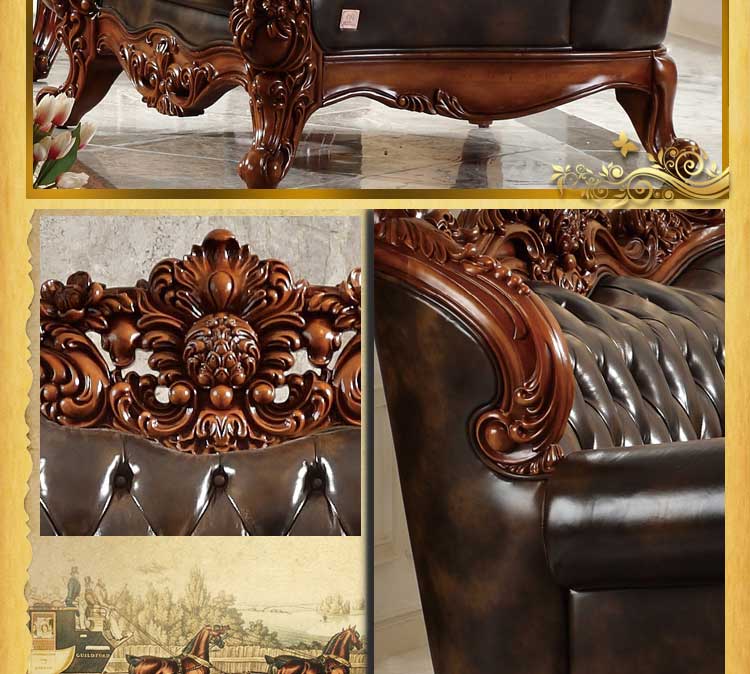法尔丹欧式真皮沙发古典客厅沙发法式实木雕花欧式高档皮沙发组合858沙发