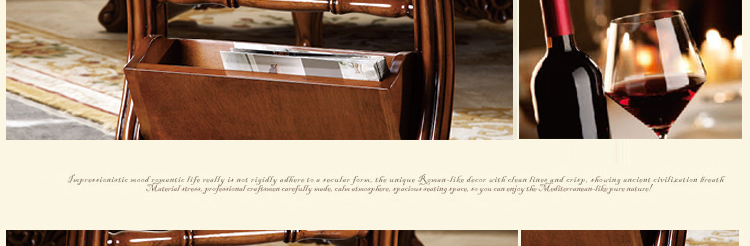 柔和的色调,大气典雅的外形,精巧的装饰点缀着每一个细节,隐隐浮现含蓄与稳重,撩拔着一种新的生活姿态,追求一种繁复夸饰,富丽堂皇,气势宏大,富于动感的艺术境界。高贵的生活品质,雍容华贵的内在气息,张扬的造型征服心灵,延续欧式的浪漫与精致!