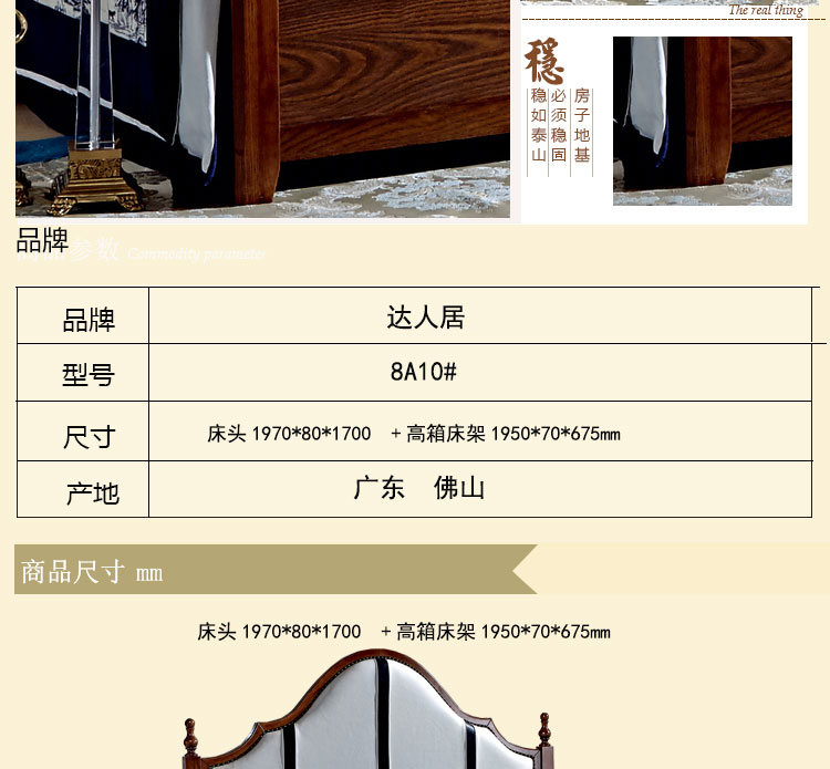 外围尺寸 床头1970*80*1700 高箱床架 1950*70*675mm