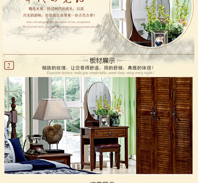 达人居 中式妆台妆镜组合新款梳妆台梳妆镜 8C01#