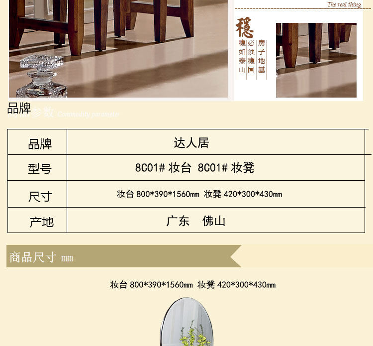 外围尺寸 妆台800*390*1560 妆凳420*300*430mm