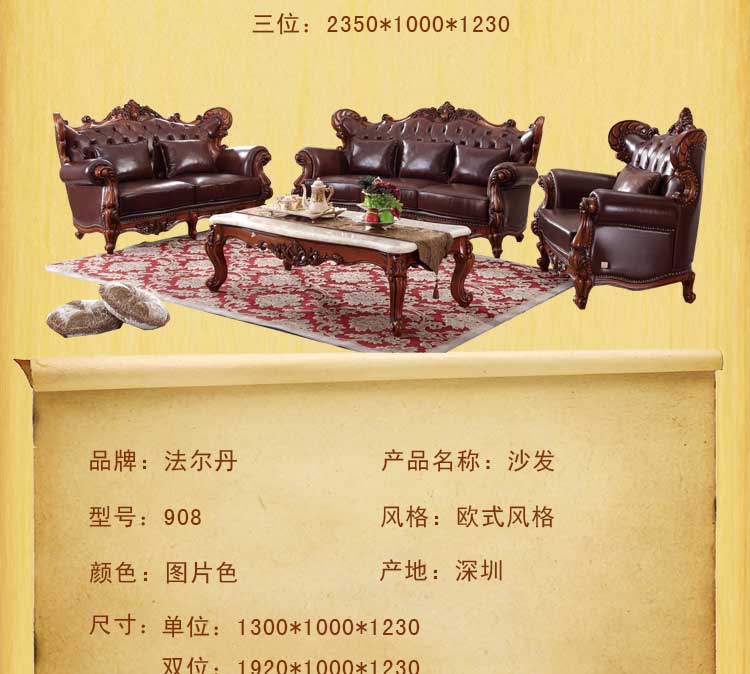 法尔丹高档雕花欧式沙发新古典小户型123组合沙发真皮908沙发