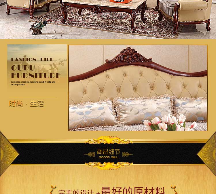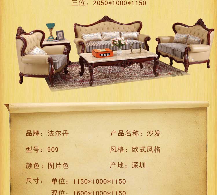 法尔丹高档欧式真皮沙发雕花皮艺沙发别墅型客厅家具909沙发