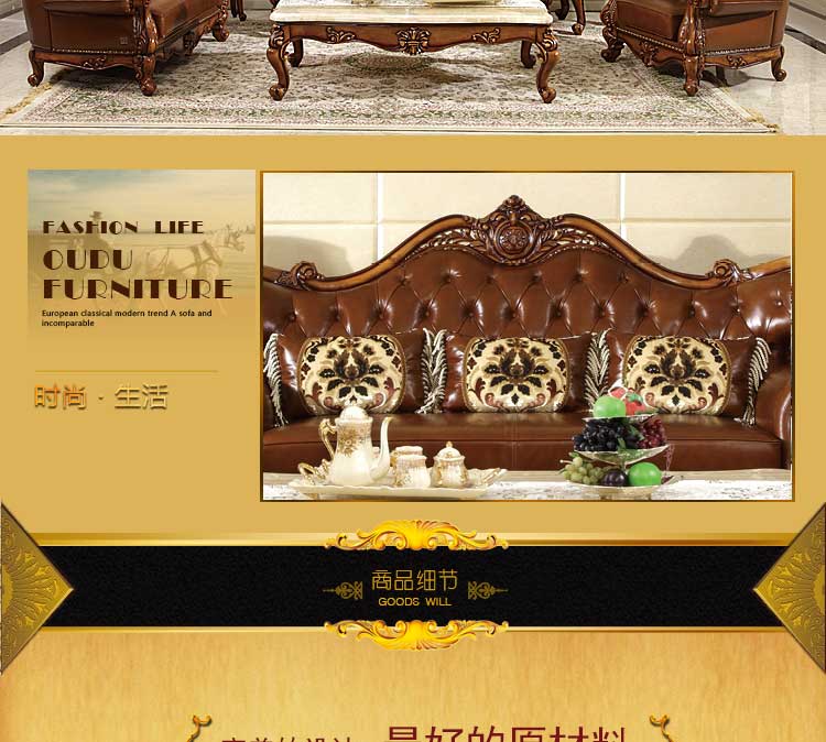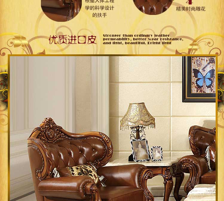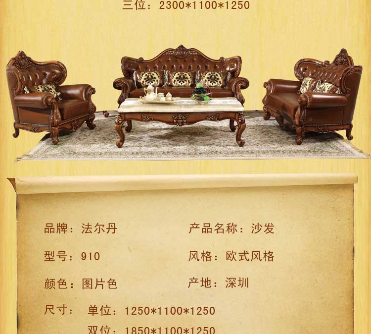 法尔丹欧式沙发皮艺组合客厅大户型高档家具欧式真皮沙发910