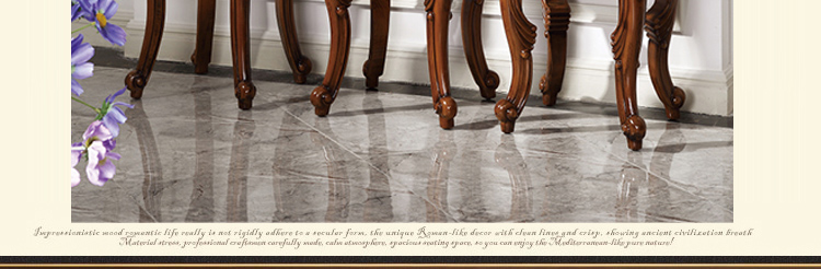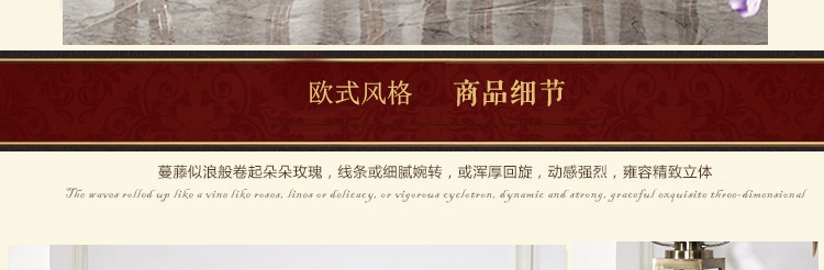 柔和的色调,大气典雅的外形,精巧的装饰点缀着每一个细节,隐隐浮现含蓄与稳重,撩拔着一种新的生活姿态,追求一种繁复夸饰,富丽堂皇,气势宏大,富于动感的艺术境界。高贵的生活品质,雍容华贵的内在气息,张扬的造型征服心灵,延续欧式的浪漫与精致!