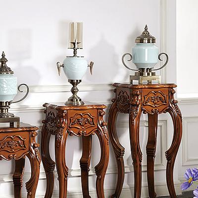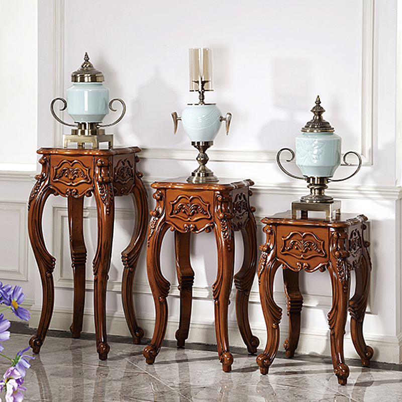 法尔丹欧式风格实木雕花客厅实木花架高中低花架A66花架