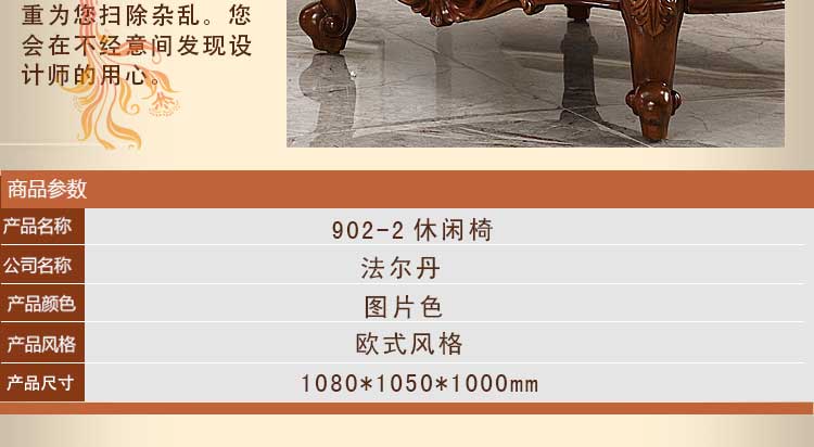 法尔丹新款欧式实木休闲椅高档奢华雕花书椅902-2休闲椅