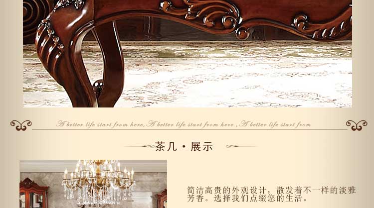 法尔丹欧式客厅茶几啡网理石实木茶几大小户型家具907长几