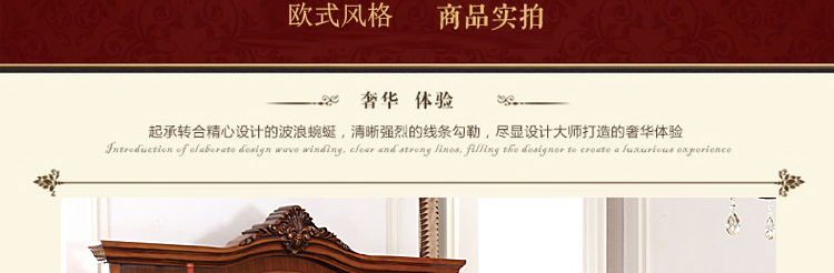 柔和的色调,大气典雅的外形,精巧的装饰点缀着每一个细节,隐隐浮现含蓄与稳重,撩拔着一种新的生活姿态,追求一种繁复夸饰,富丽堂皇,气势宏大,富于动感的艺术境界。高贵的生活品质,雍容华贵的内在气息,张扬的造型征服心灵,延续欧式的浪漫与精致!