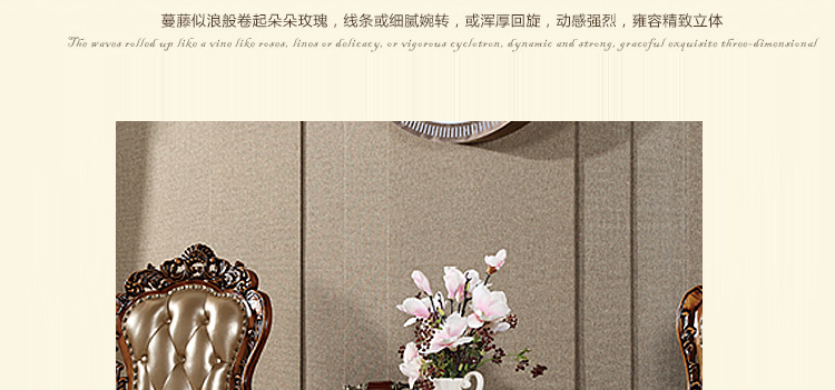柔和的色调,大气典雅的外形,精巧的装饰点缀着每一个细节,隐隐浮现含蓄与稳重,撩拔着一种新的生活姿态,追求一种繁复夸饰,富丽堂皇,气势宏大,富于动感的艺术境界。高贵的生活品质,雍容华贵的内在气息,张扬的造型征服心灵,延续欧式的浪漫与精致!