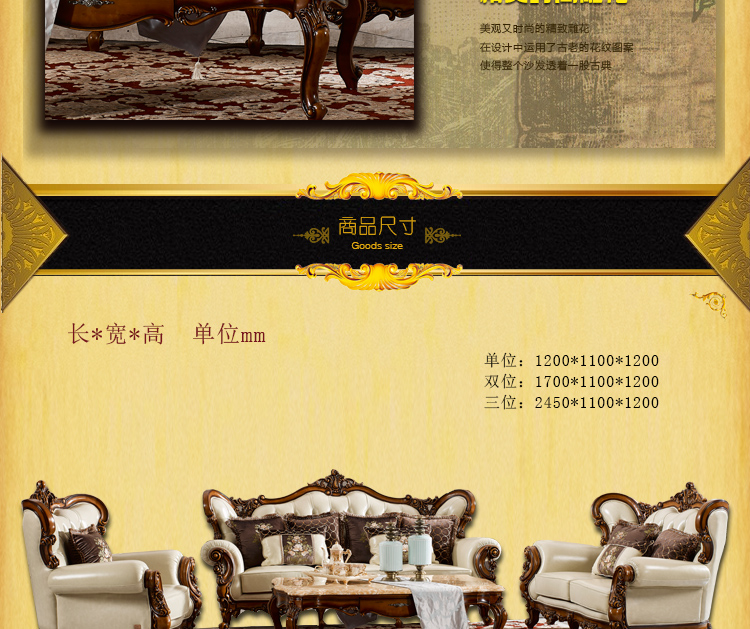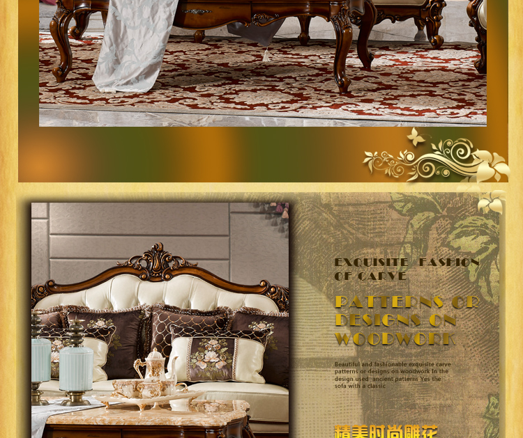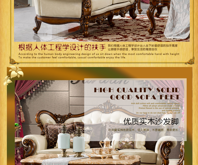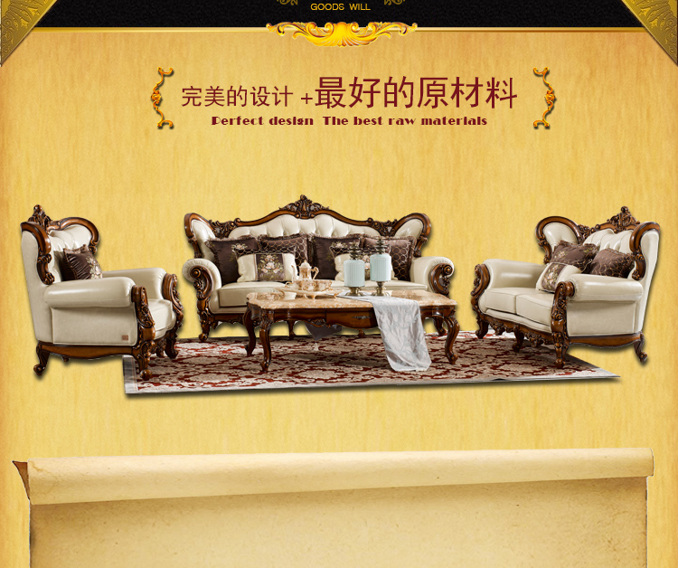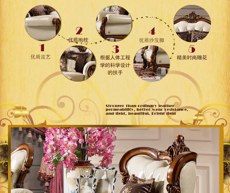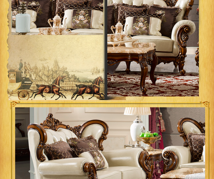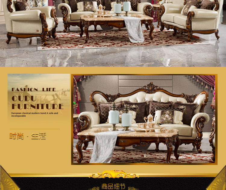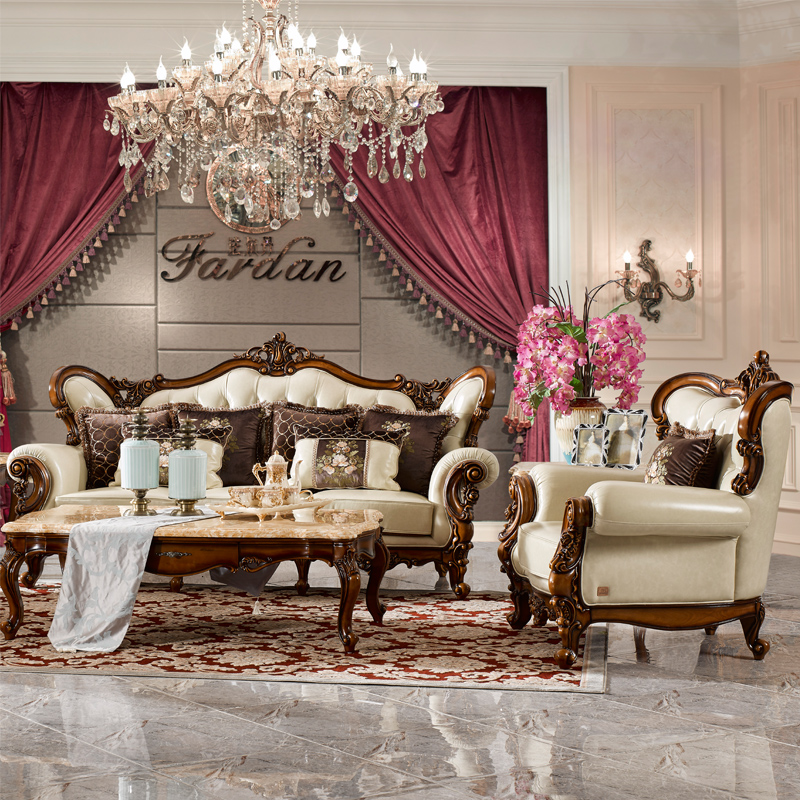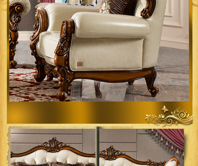 法尔丹欧式风格客厅舒适U型沙发1+2+3实木沙发组合皮艺沙发935沙发