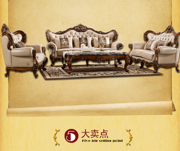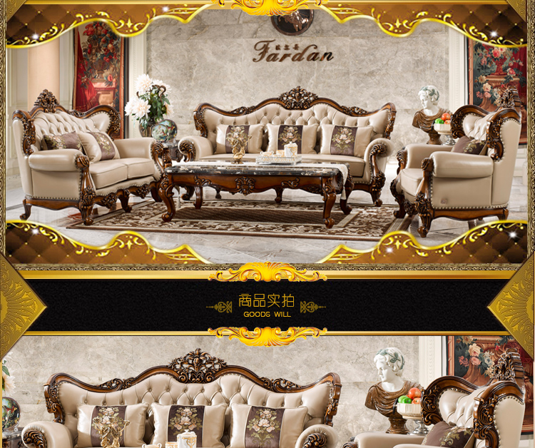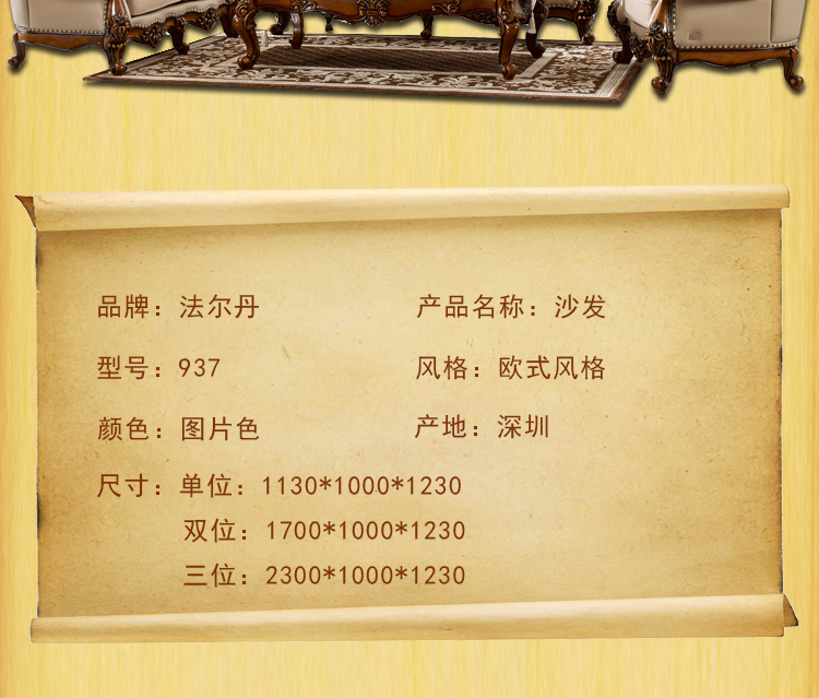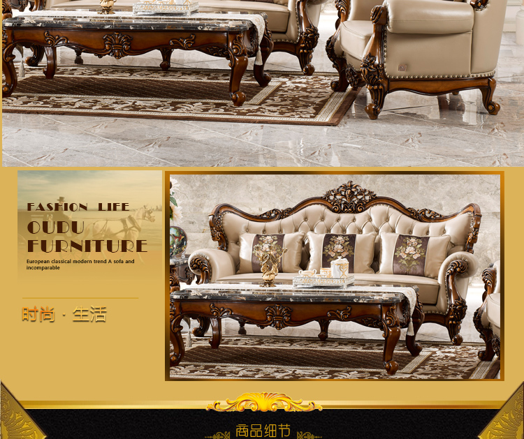 法尔丹客厅高档舒适欧式风格实用实木雕花沙发U型沙发组合937沙发