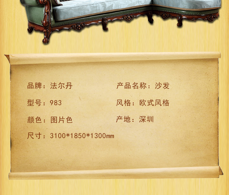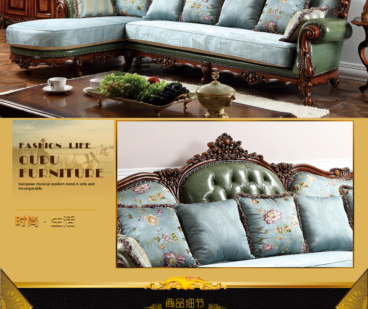 法尔丹欧式风格客厅舒适转角沙发L型沙发组合奢华沙发983转角沙发