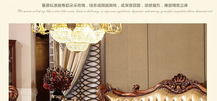 柔和的色调,大气典雅的外形,精巧的装饰点缀着每一个细节,隐隐浮现含蓄与稳重,撩拔着一种新的生活姿态,追求一种繁复夸饰,富丽堂皇,气势宏大,富于动感的艺术境界。高贵的生活品质,雍容华贵的内在气息,张扬的造型征服心灵,延续欧式的浪漫与精致!