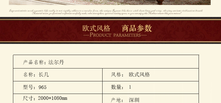 法尔丹欧式风格实木客厅品质奢华长几大小户型时尚长几965长几
